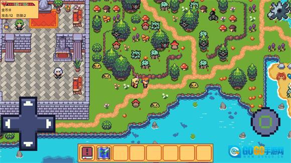 在地图中收集水果与蘑菇能够增强角色的属性,战胜怪物可获取金币,这些金币能用来与NPC交易以进一步提升角色属性。