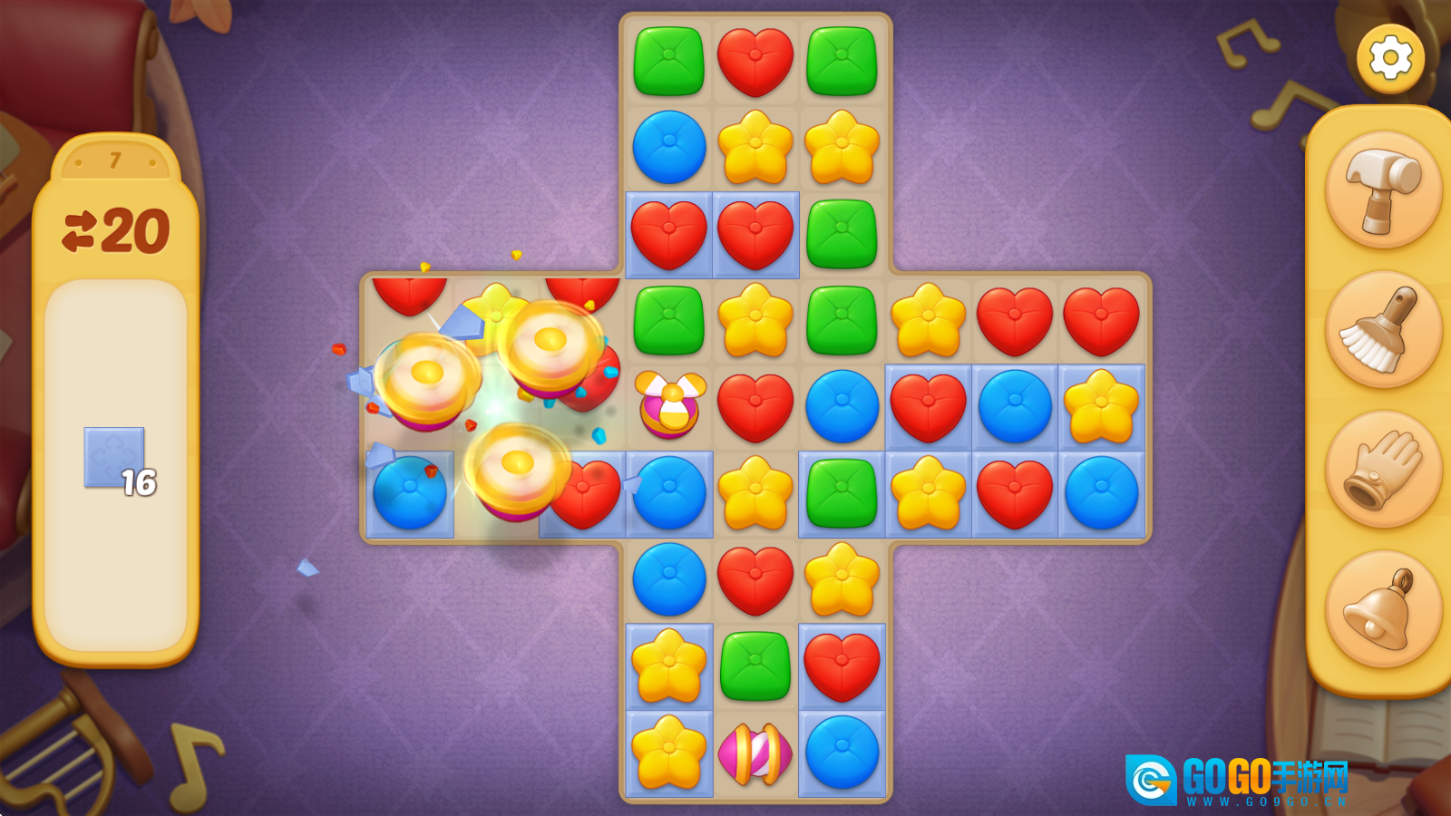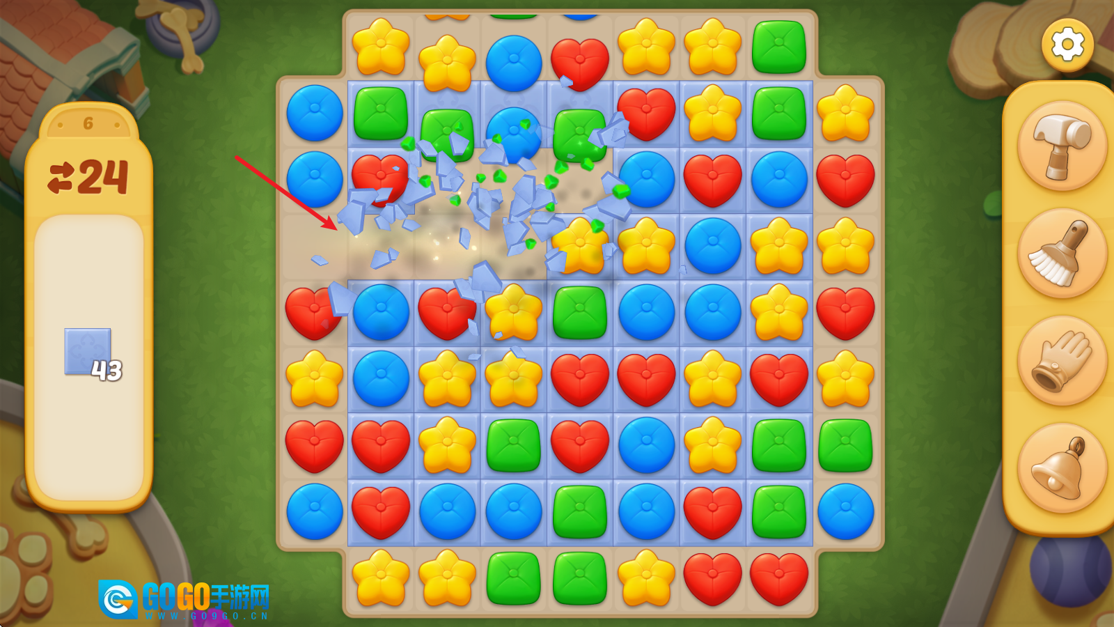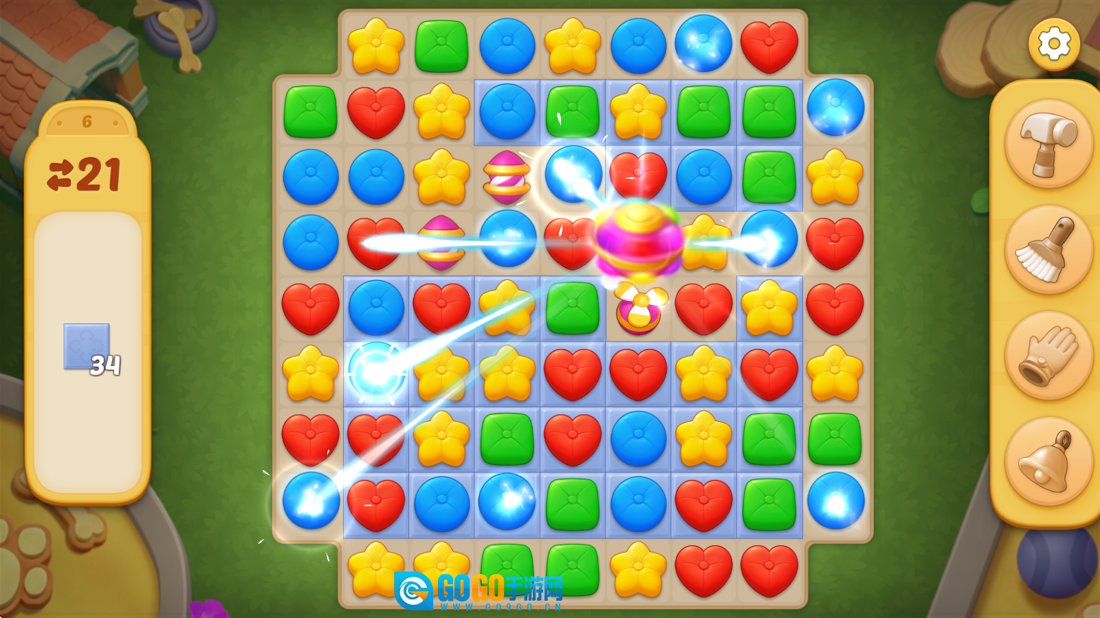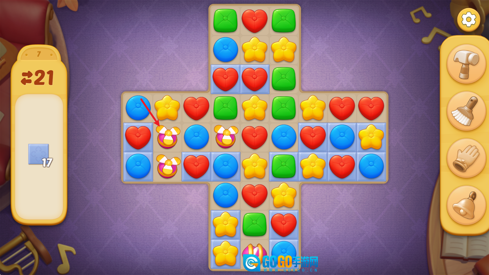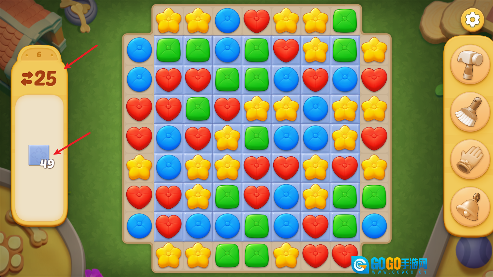 1、进入关卡挑战后,左侧会显示该关卡的目标要求与步数上限。