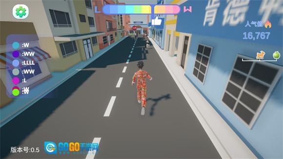 3、每隔一段距离就会出现不同的可拾取道具,拾取这些道具后能够提升人气值。