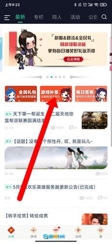 1、进入首页,可以看到游戏补签功能。