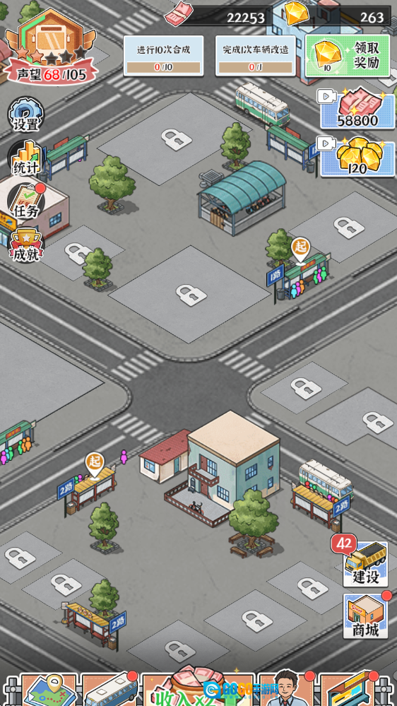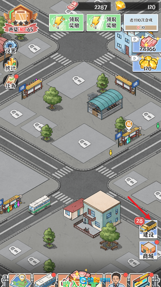 3、除了运营公交,你还能参与小镇建设,添加各类店铺与设施,让小镇愈发繁荣,吸引更多人口,进而提升你的收益。