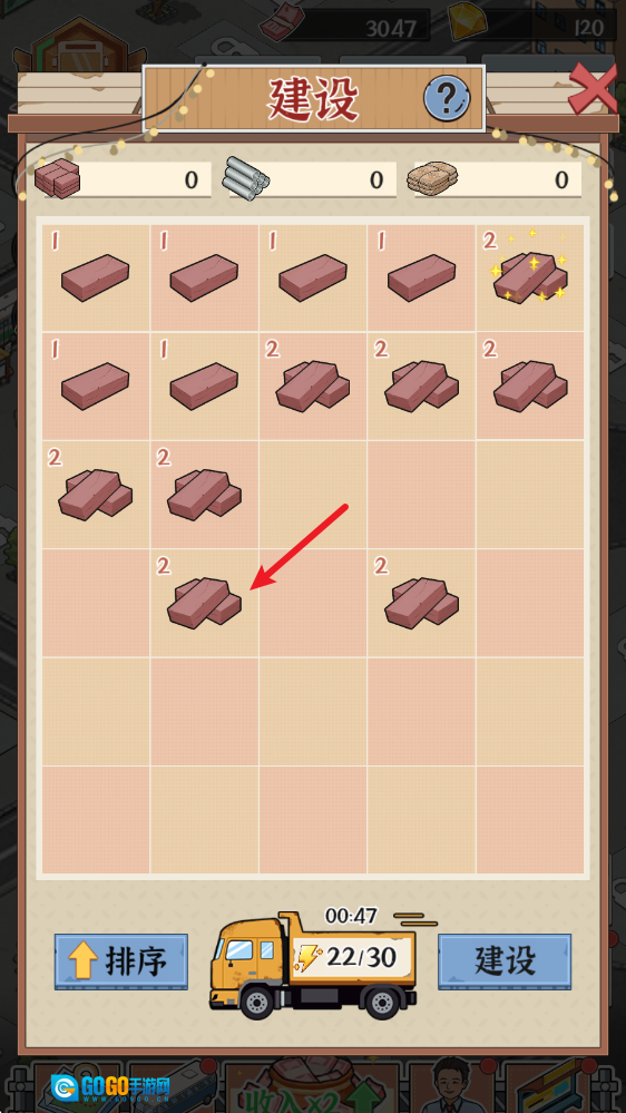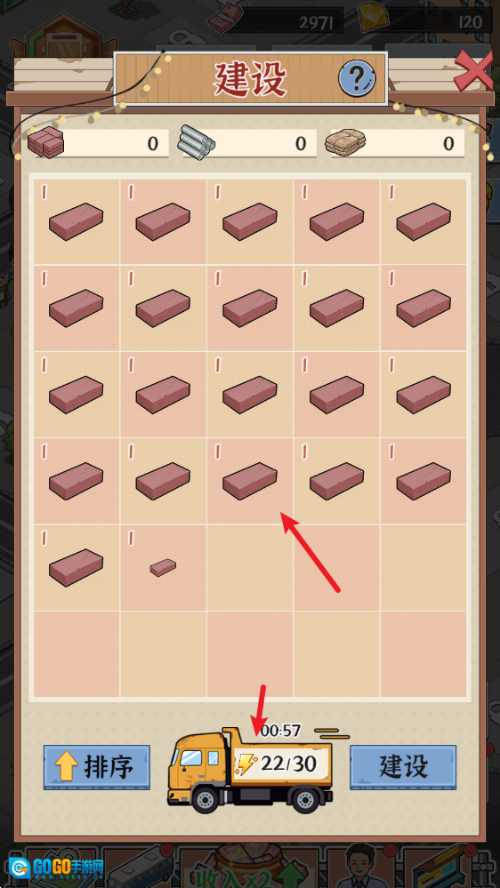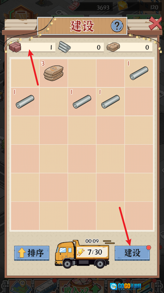 2、进入后需要消耗体力来获得建材。