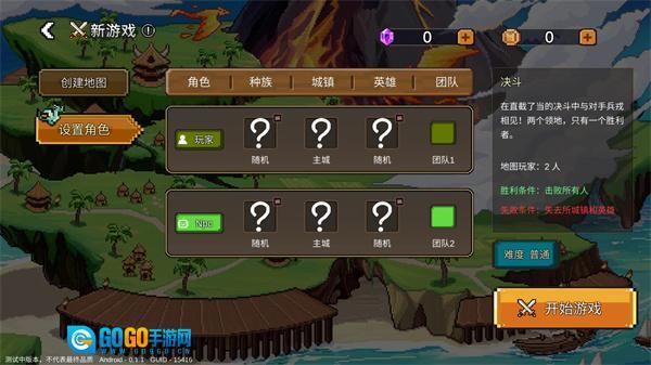 选好地图后,玩家可以选择自己的种族、主城和英雄,所有选项确认完毕后,点击开始游戏即可正式进入游戏。