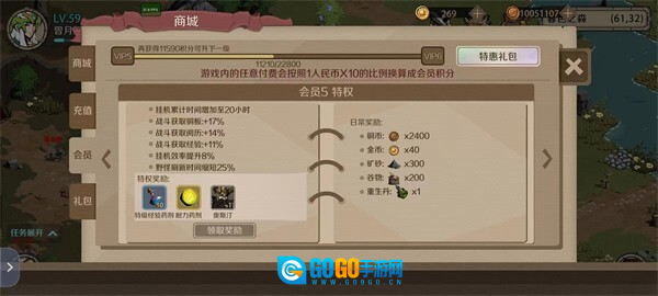 嘿嘿,充值的具体情况这里就不细说了,游戏内就能看到相关说明。总之VIP等级越高,能享受到的特权就越丰厚。另外提醒一下,不管充值多少金额都会累计到VIP等级积分里,所以购买各类礼包是性价比最高的选择。