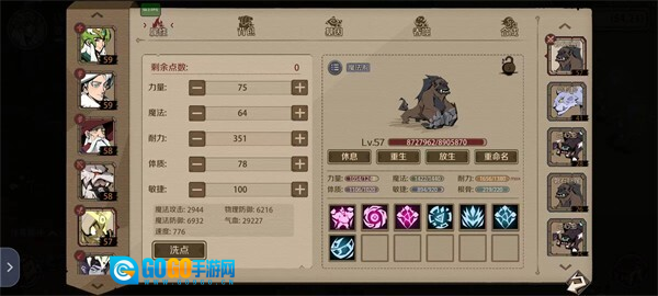 这个游戏的机制是这样设定的:物理攻击会自动锁定对方物理防御最高的目标,魔法攻击则会优先攻击对方速度最快的单位。因此,你需要把肉宠和肉盾的速度调整得比输出型的人物和宠物更快。不过老楚设计得挺贴心的,40级之前可以免费洗点,这差不多能让你彻底熟悉这个游戏的机制了。