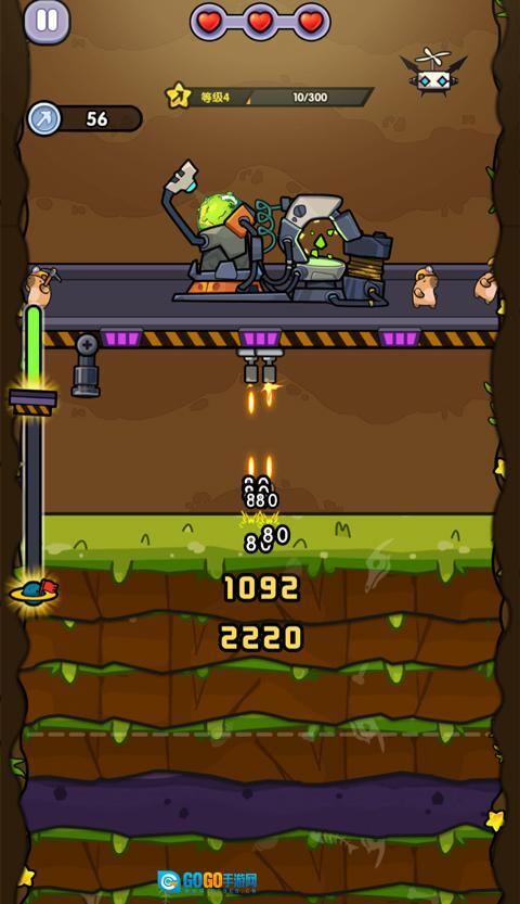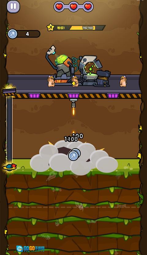 4、游戏的全部操作仅需单指点击就能完成,长按屏幕可激活钻头冲击波,用于突破岩层和攻击敌人;短触则能实现紧急跃迁机动,以此躲避危险。