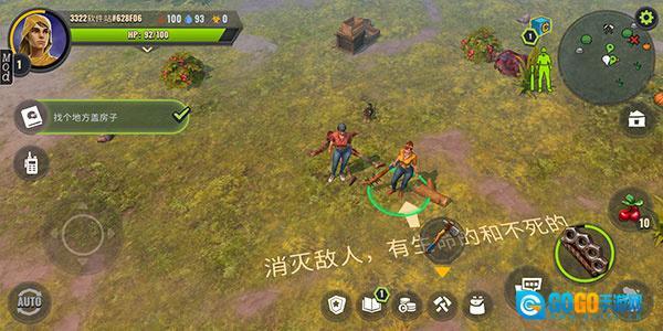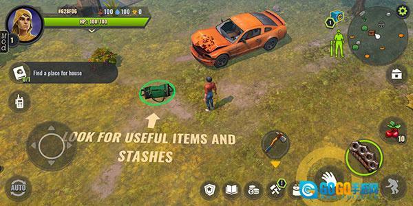 1、游戏开启后,先收集些树枝打造简易武器,清理掉住所周边的丧尸。之后去附近车辆处获取刀具等更趁手的工具,再放置几块地板(这是系统任务,完成后才能离开初始区域)。离开初始区域后,左右两侧会呈现不同地形,左边是石质地貌,右边则是树林区域。