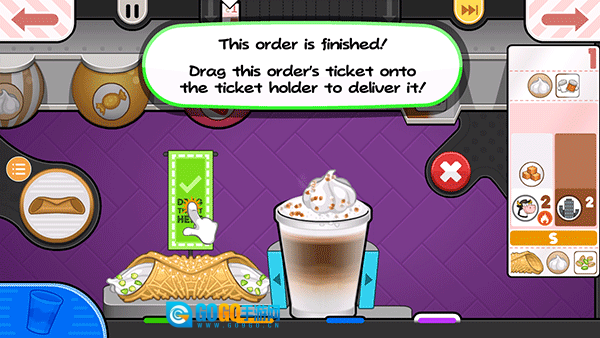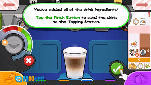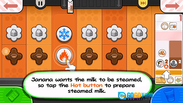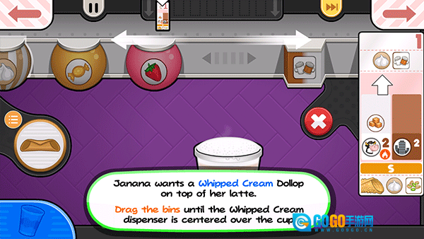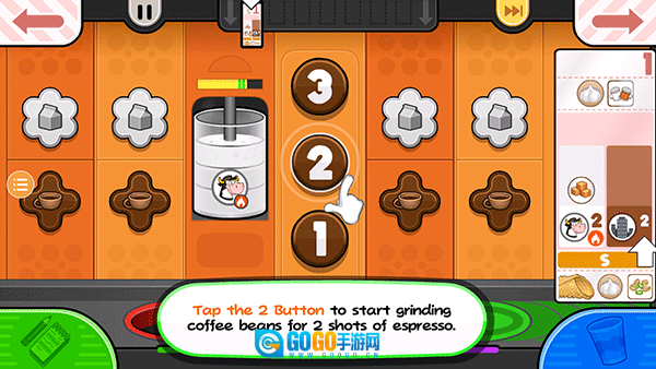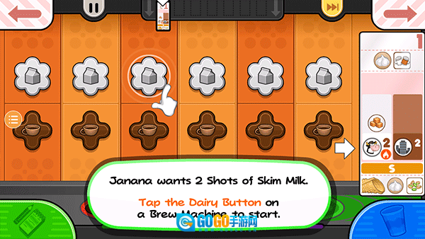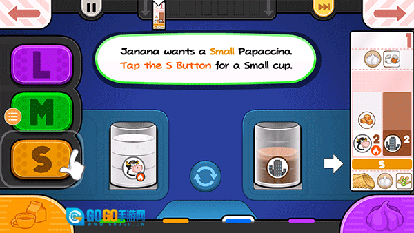 14、贾纳纳想要一杯小杯的Papaccino,需要点击小杯子对应的S按钮。