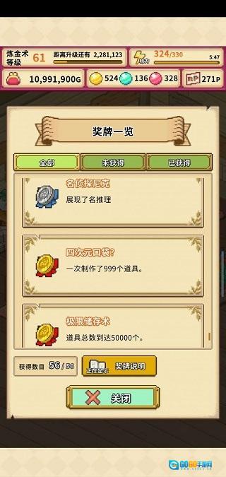 3、把炼金制作出的各类道具陈列在商店里,就能挂机获取收益,达成每个道具的销售目标后,还能对商店进行强化,从而提升交易额!