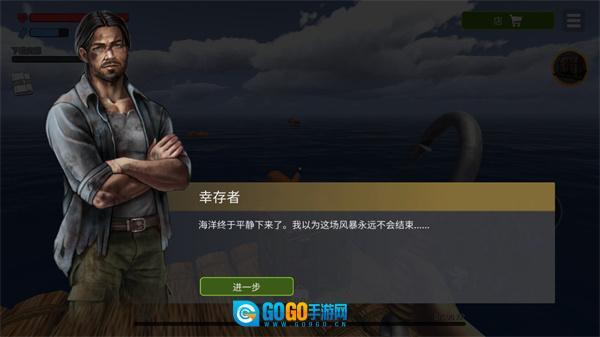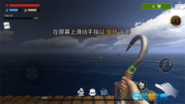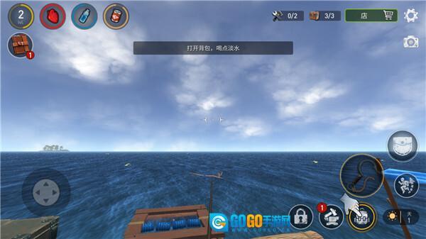 这里我们以生存模式为例,进入游戏后,需借助操纵杆操控人物角色在木筏与水中活动。