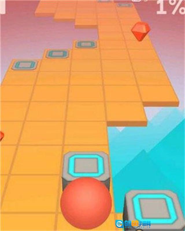 操作时不用上滑让球弹起,方向把控是关键,球会自动跳过方块,只需控制它的落点位置就行;碰到带红色图案的钻石,滚过去吃掉,然后沿着缝隙一路滑行通过就可以了。