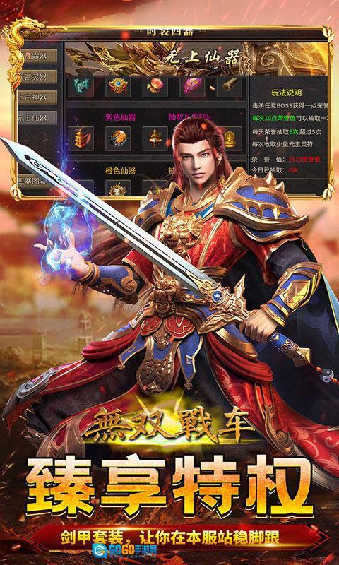 无双战车是一款玩法经典的传奇类游戏,在这里你能体验到刀刀切割、刀刀烈火的畅快战斗乐趣,化身冒险者开启一系列战斗挑战,凭借手中武器与各色角色及敌人交锋。游戏内打造了十几种风格迥异的场景与地图,各类强力BOSS和丰富资源都将为你一一呈现,你可以通过自身努力不断提升实力,轻松探索地图,斩获属于自己的心仪装备。