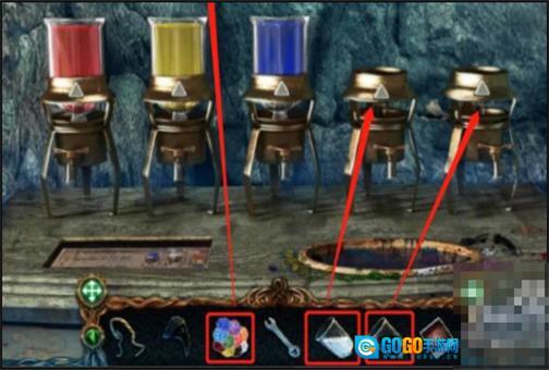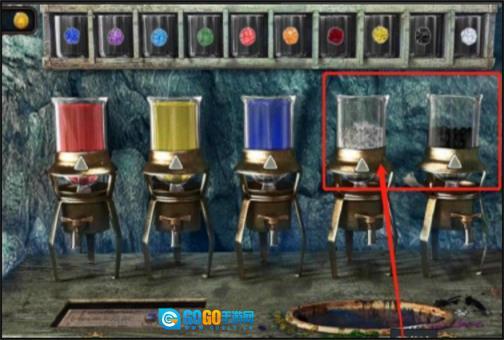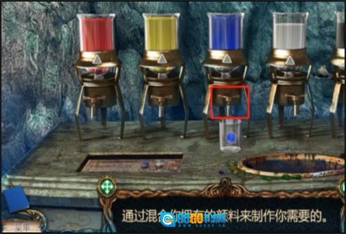 5、第一个烧瓶需要调成蓝色,所以只要在蓝色瓶下方把按钮旋转两次就能完成调配。调配好之后把烧瓶放回原位,接着换下一个继续进行操作。