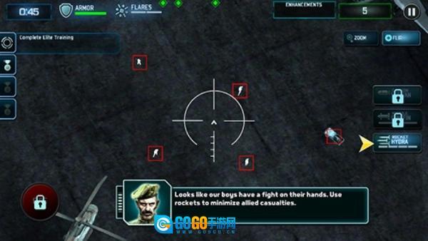 操作并不复杂,玩家只需要在挑战中滑动屏幕来回的移动自己的视角并发现地图中的目标就能发起攻击,有时候甚至还需要你切换机枪或是导弹消灭不同的敌人,随着玩家对无人机的升级,你能使用的武器和无人机的性能也会产生不同的变化。