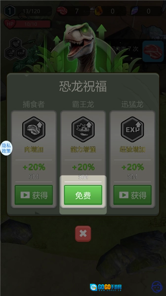 5.你还可以获得恐龙的祝福,增强自己的实力。