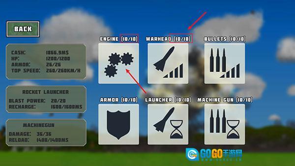 购买成功后,点击【BUY UPGRADES】按钮即可对武器进行升级操作。