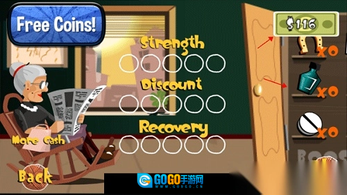 5. 游戏里获取的金币还能用来给老奶奶升级,并且为她配备更高级的武器。