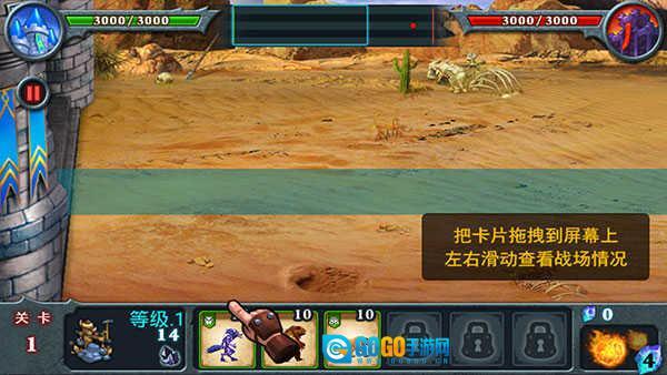 拖动卡片至屏幕区域即可开启对战,通过左右滑动操作能够浏览战场全局。