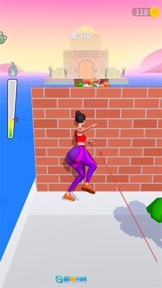 1、进入第3级关卡后,操控体型有所增大的角色去攀爬砖墙,以此突破前方的障碍,继续向目标前进。