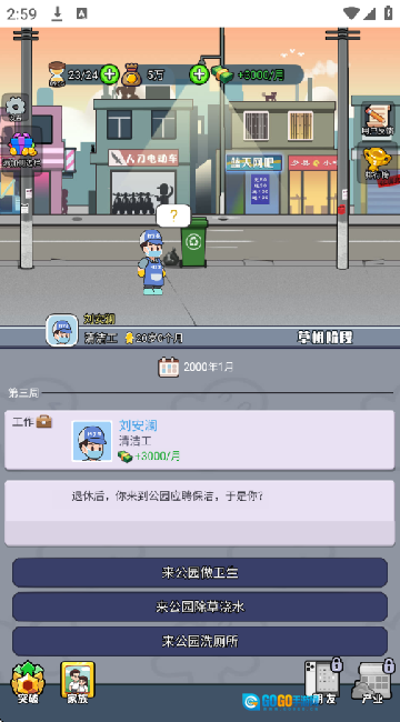 4、你到公园里应聘保洁岗位,此刻你的选择将决定接下来的剧情走向。