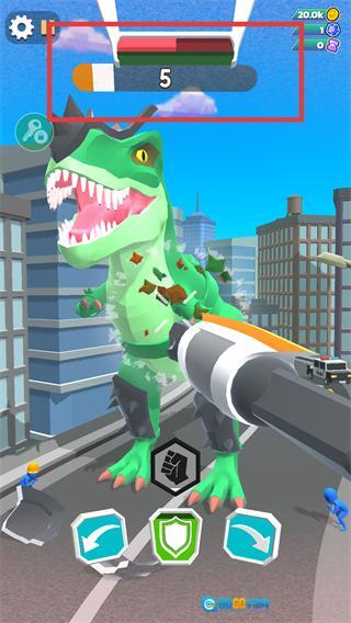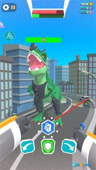 2、对战【恐龙机甲】时,点【拳头图标】攻击。
