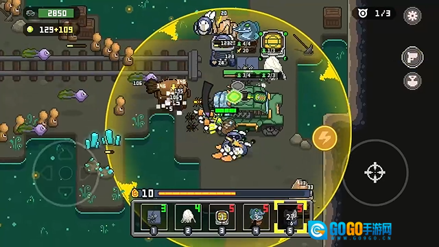 3、挑战BOSS,特别是遇到高爆发类敌人时,务必提前释放“能量护盾”这类防御技能,同时配合大范围控制技能来削弱对方。另外,让鸡械队伍保持分散站位,可以有效减少全队被秒杀的可能性,显著提高容错率。