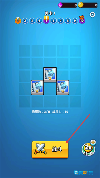 1、打开游戏后,点击界面底部的【战斗】按钮,即可开启当前关卡的挑战。