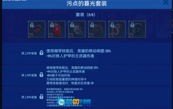 污点还有专属的暮光套装,穿上6件就能触发套装效果,提升射程与伤害,同时恢复生命值。