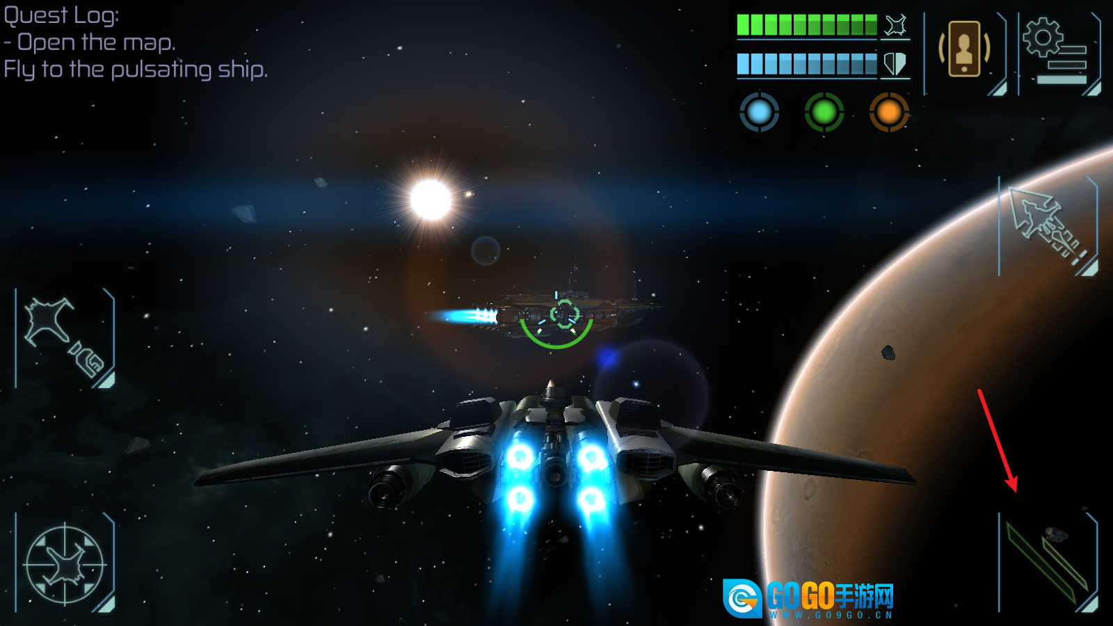 通过滑动屏幕可自由操控舰队航向,轻触推进键会消耗能量完成加速,达成灵活的星际机动。2、进入战斗状态时,要先手动锁定敌舰目标,再点击火力键发射激光炮或能量弹开展精准打击,操作节奏紧张又刺激。3、玩家得频繁借助通信面板领取任务,同时通过银河全景图规划航行路线。在战斗的间隙时间,点击升阶箭头就能进入强化界面。