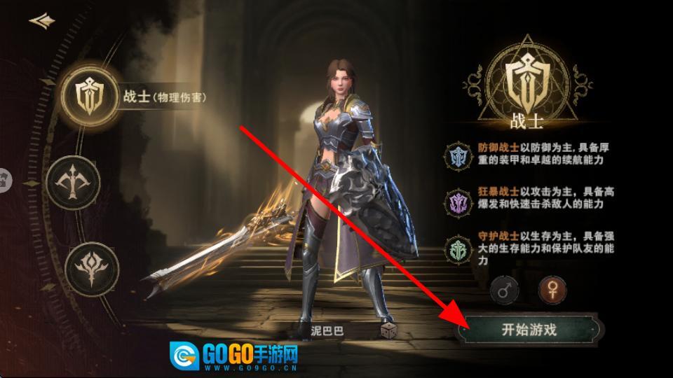 在创建角色时,你可以选择战士等不同职业,每个战士分支都有着独特的特点。选好角色后,点击“开始游戏”按钮,就能进入充满未知的冒险世界了。