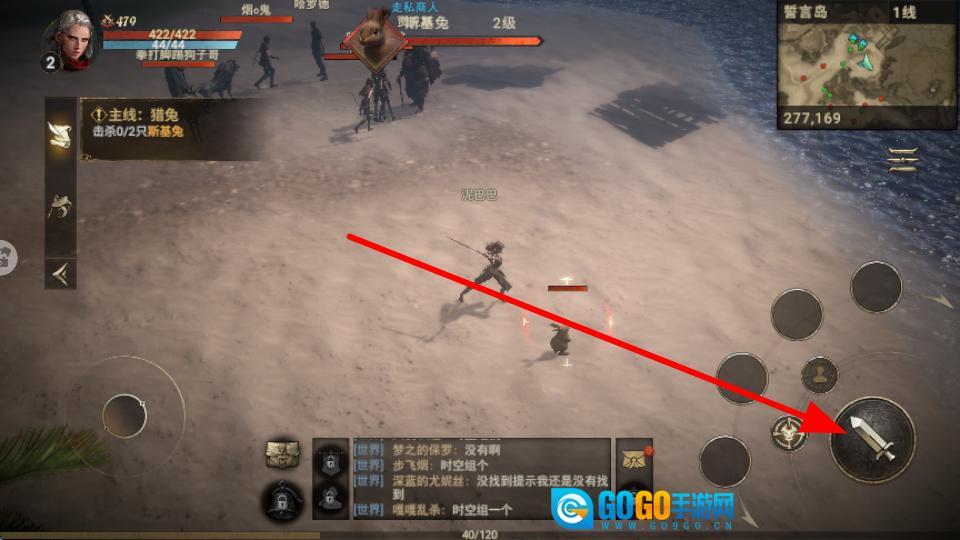 点击右侧的攻击按钮即可向敌人发起攻击,以此来应对猎兔等任务中的敌人;持续进行攻击能够更高效地达成击杀目标。