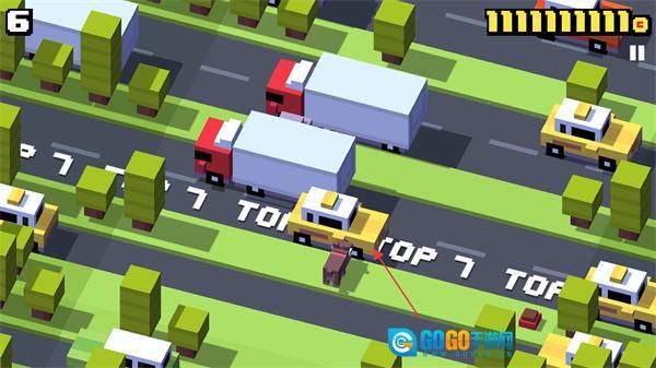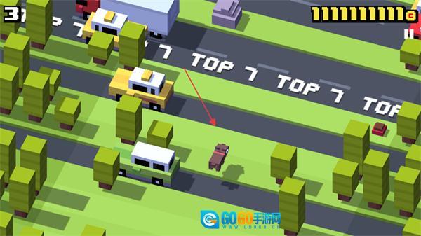 成功穿过马路后,接着操控角色往前走,留意路面上出现的TOP7之类的标识,同时注意过往的车辆。