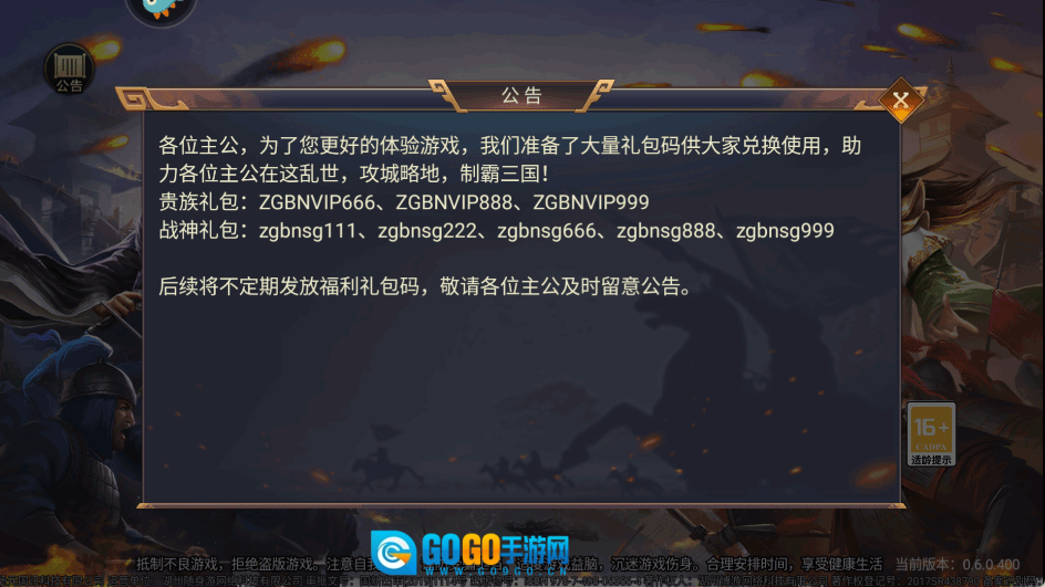 后续会不定时推出福利礼包码,还请各位主公多多留意公告信息。