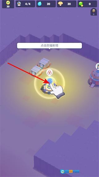 点击防辐射塔,激活该建筑以使其发挥防辐射功能,这是保障营地安全的关键生存操作。