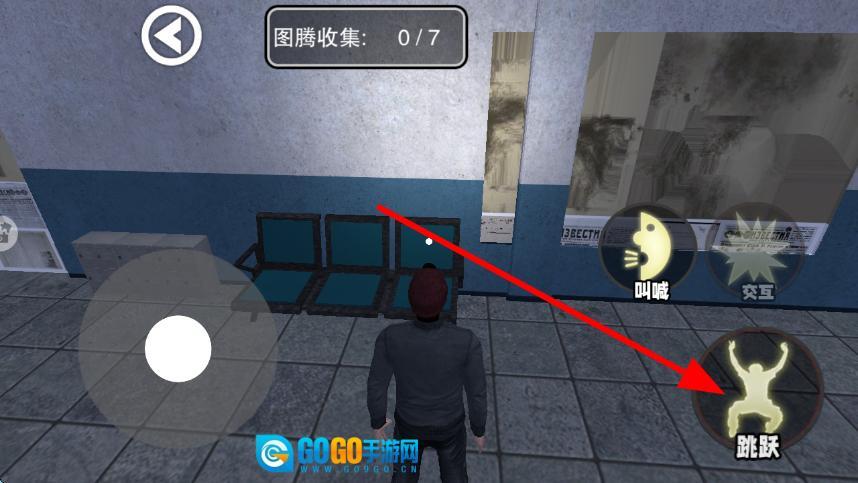 当碰到需要越过的障碍物时,点击跳跃按键,使角色执行跳跃动作,越过障碍,从而为完成任务、找寻目标物品打通路径。