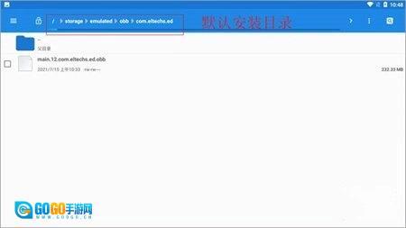 4、请把“main.12.com.eltechs.ed.obb”文件移至Exagear模拟器的安装目录中,该模拟器的默认安装路径是【storage/emulated/obb/com.eltechs.ed】。