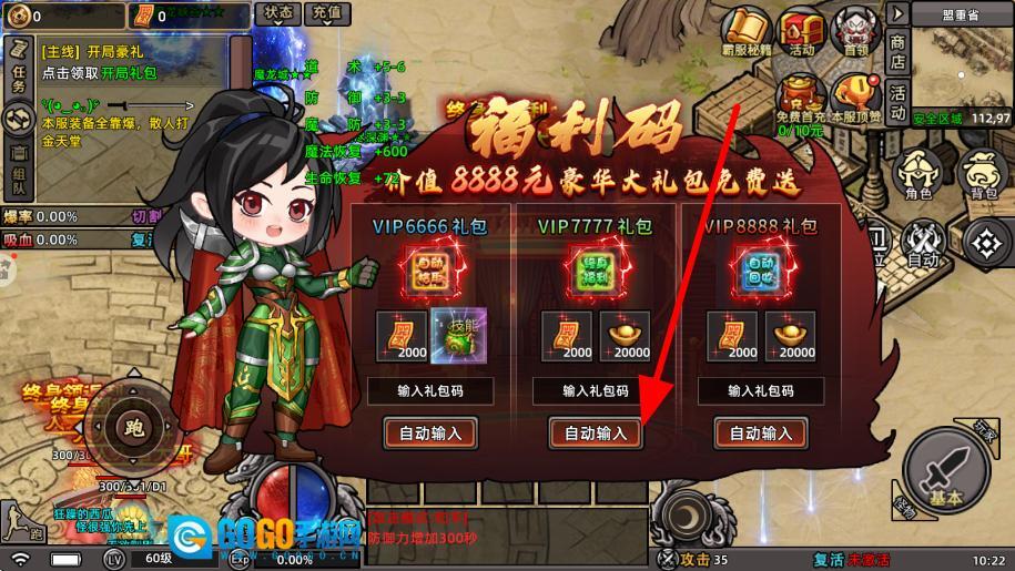 这里有福利码可以使用,系统会自动输入礼包码,让你免费领取价值不菲的豪华大礼包,礼包里的各类道具奖励,能够帮助角色更好地成长和展开冒险。