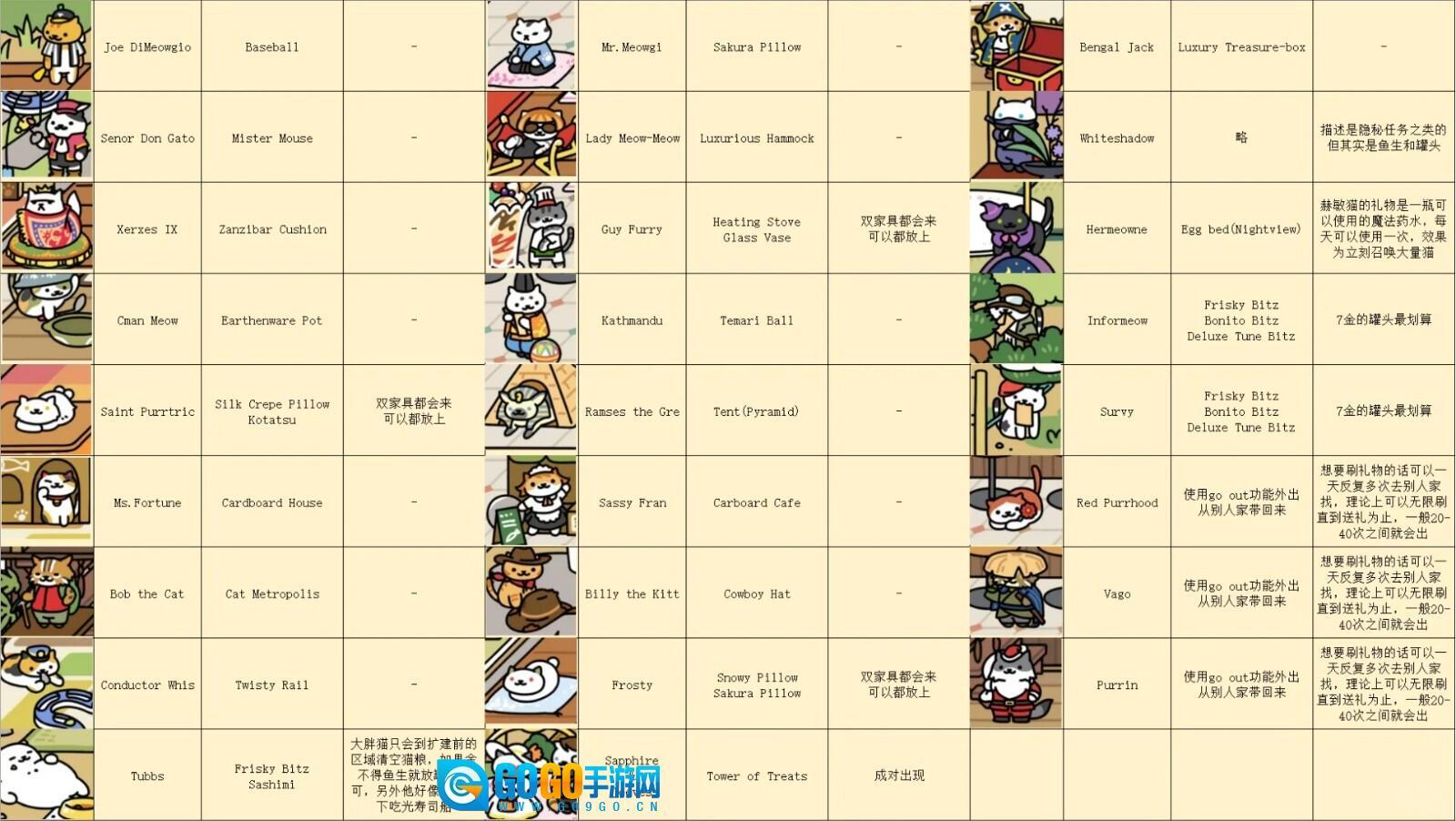 在《猫咪后院2》里,总共有26只特殊猫,每只猫的出现条件都已为大家整理在表格中了。