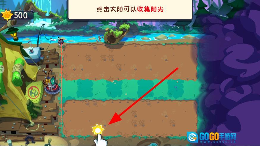 进入游戏后,点击场景里的太阳来收集阳光。阳光是种植植物的关键资源,不断收集它,能为之后种植植物积累好资源。