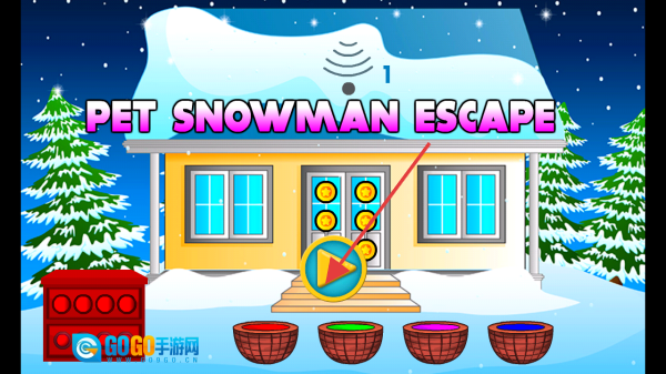 进入PET SNOWMAN ESCAPE游戏后,留意房屋、彩盆等场景元素,通过与它们互动来寻找帮助雪人逃脱的线索。