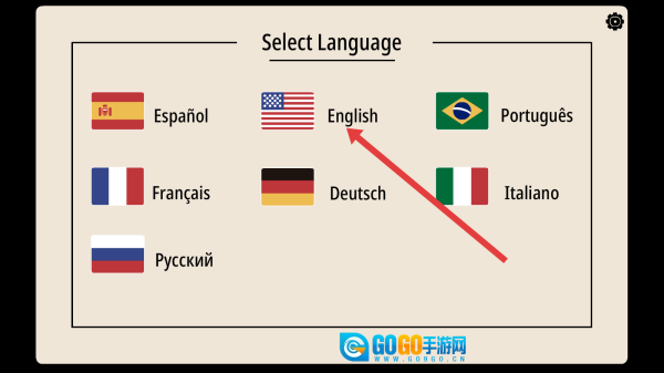在语言选择界面点击English选项,把游戏语言设置成英语,这样后续操作理解起来会更方便。