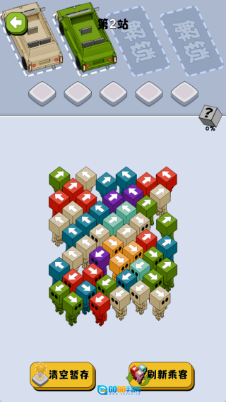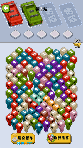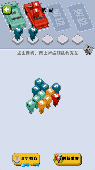 当所有乘客都顺利登上对应颜色的车辆后,这一关卡便宣告通过,玩家可解锁后续难度递增的关卡,不断考验自身的调度能力。