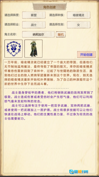 在角色创建界面,你能够自由组合基础职业、性别与种族,并给你的角色起一个响亮的名字。