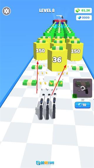 操控经过升级的枪械,击碎金币方块与障碍物,收集各类资源,完成关卡的挑战。