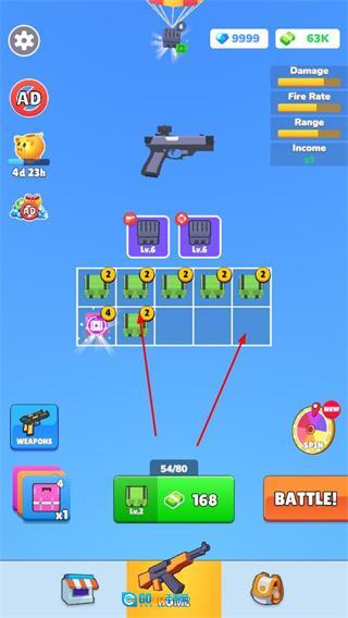 解锁新关卡后,能够得到额外奖励,积攒资源来进行枪械的合成与升级。