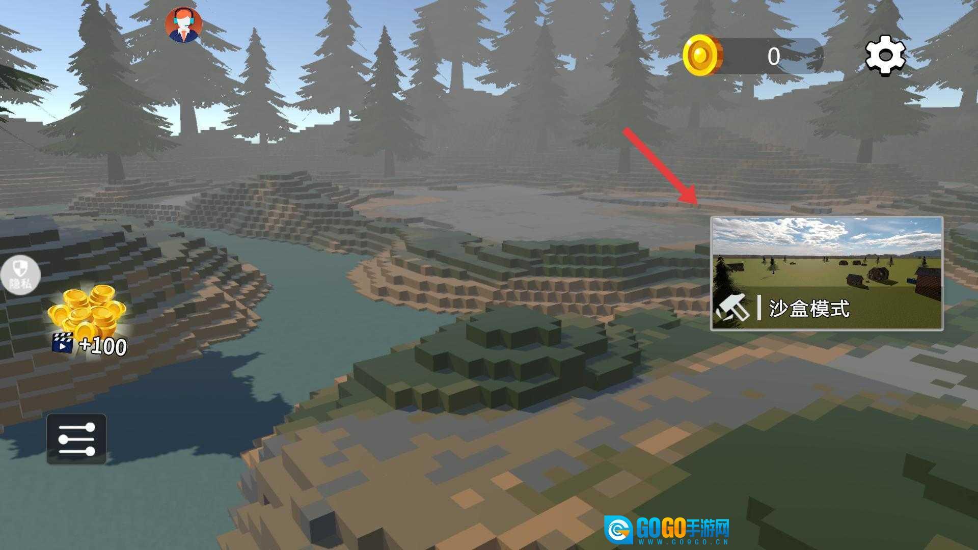 进入游戏后,映入眼帘的是像素风格的野外场景,你可以选择沙盒模式,开启在这个世界的探索之旅。