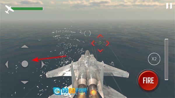操控战机移动时,借助左侧的操控按钮来把控战机的飞行方向与移动轨迹,进而追踪敌方目标。