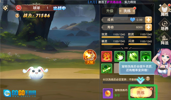 玩家可以通过为宠物进行洗练来提升其资质,并且在此过程中有机会让宠物变异,从而获得更强大的宠物。