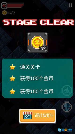 关卡结算界面会呈现玩家对关卡目标的完成程度以及奖励详情,点击退出战斗按钮就能回到主界面。