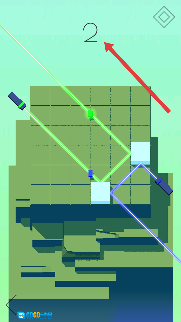 进入第二关,你需要分别操控绿色与蓝色激光,借助棱镜和反射镜的组合,引导光线到达指定位置,解开这道多色光线谜题。